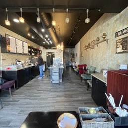Small Persian cafe that is tucked away in a strip mall Have a solid selection of food and drinks, but when I came they did not have any pastries For some reason they open daily at 12 PM, which is strange considering that they sell coffee and breakfast There are a few tables inside and out, but the place is pretty run-down so it might be a better option to get things to-go I tried a honey-cinnamon latte and a Persian pizza, both of which were delicious! It took a while for the owner to prepare the pizza, but he was very friendly